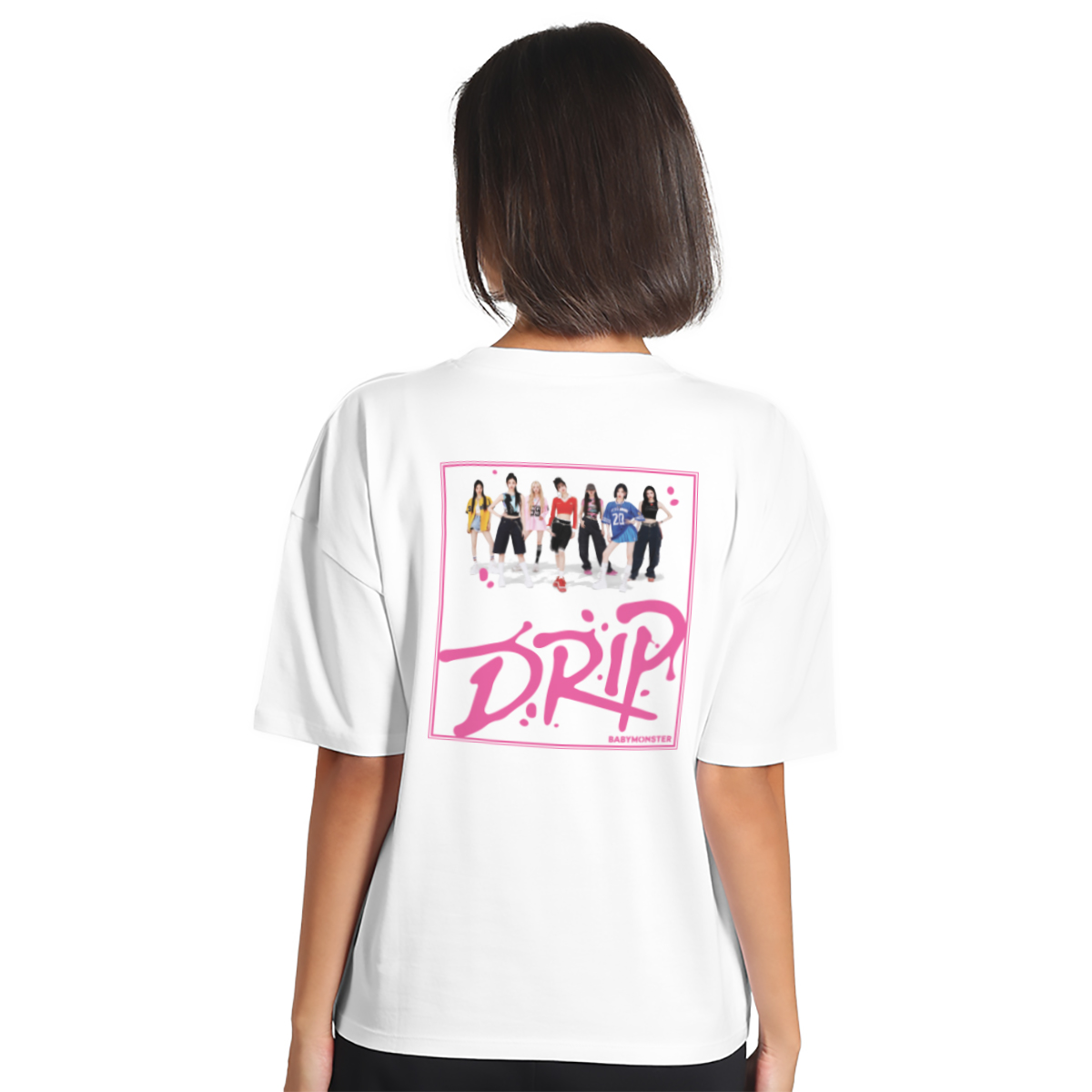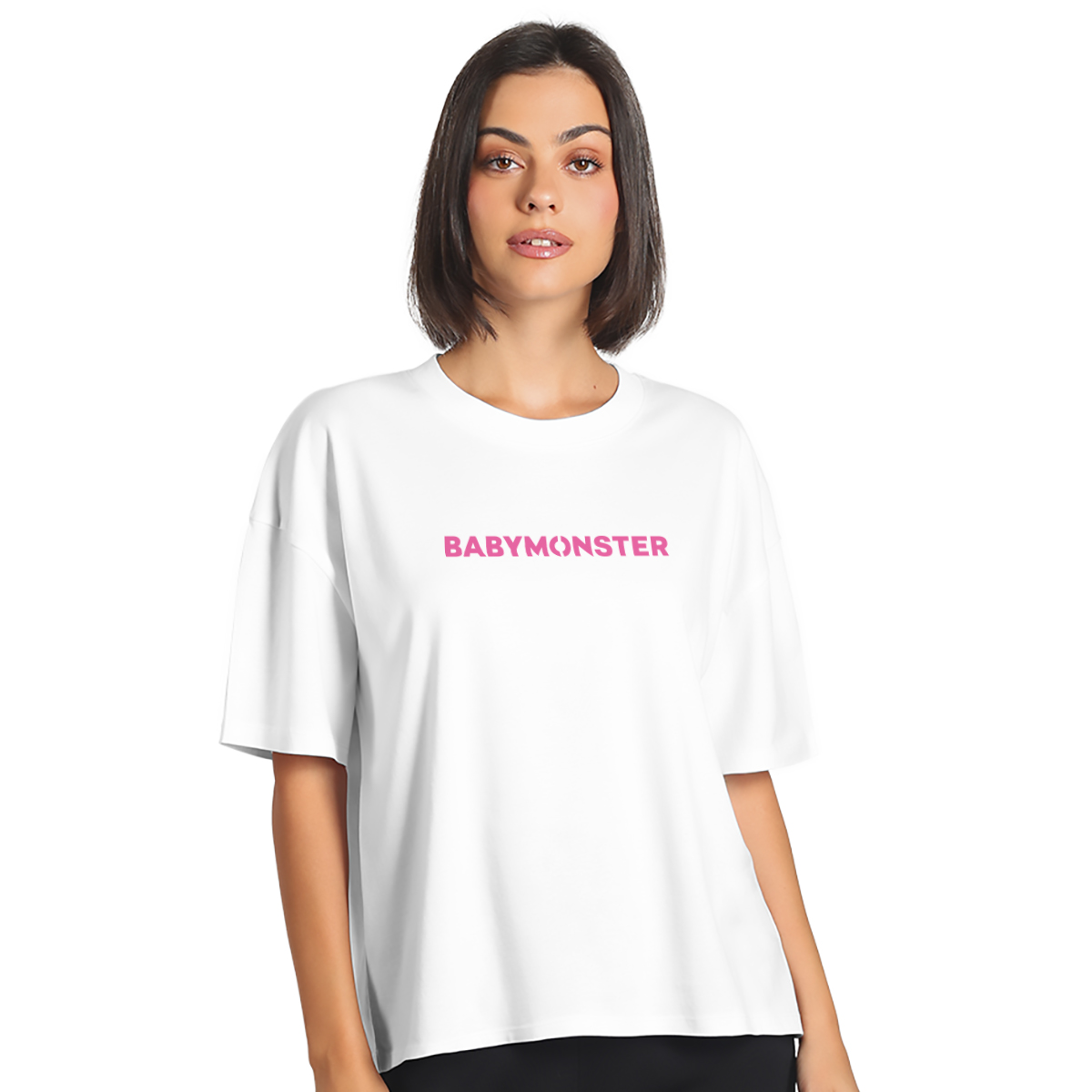 Oversize majica za devojke koje znaju ko su Babymonster i zašto se o njima priča. Bela, široka i spremna da se nosi sa stavom.
