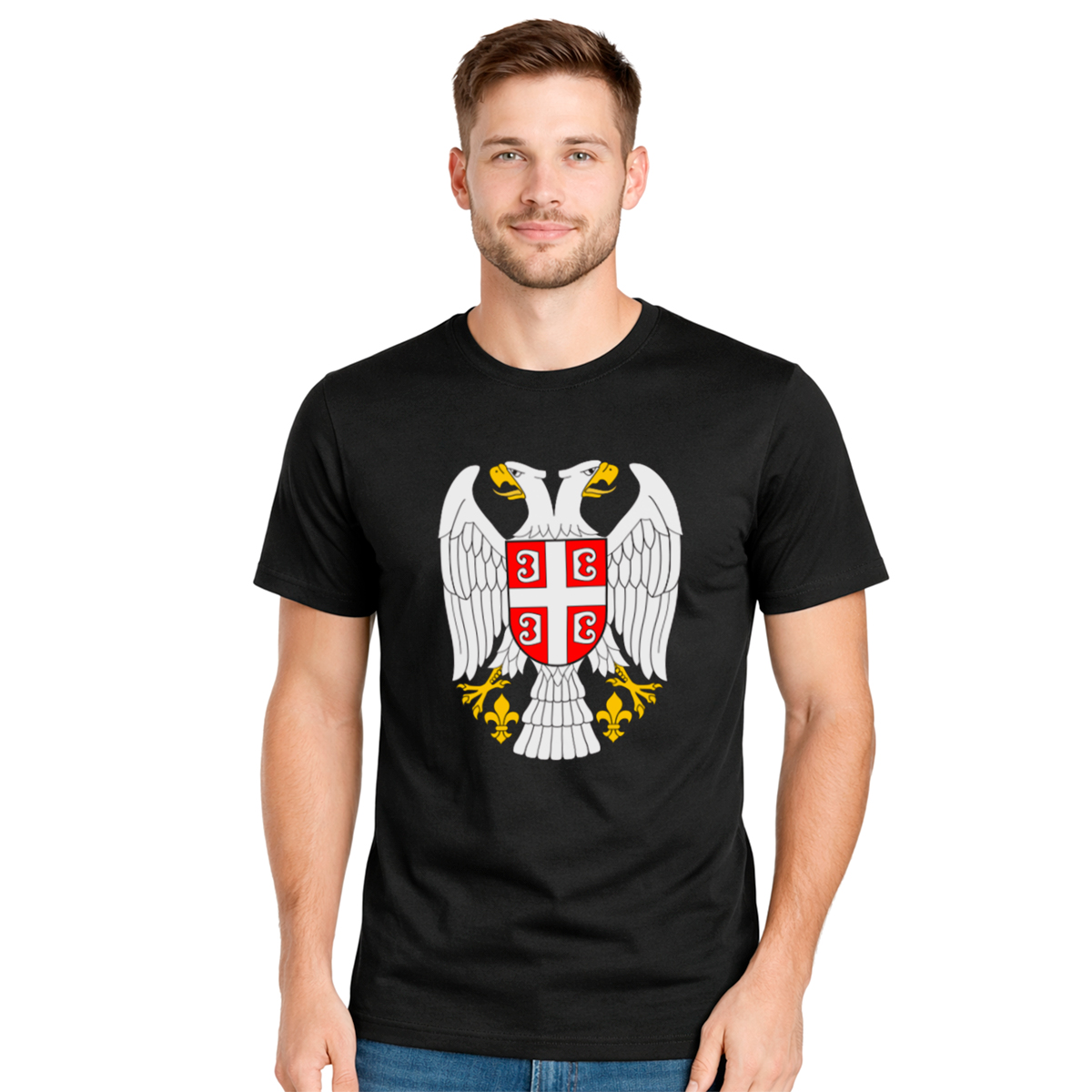Muška crna majica sa dvoglavim orlom, jednim od najsnažnijih simbola srpske istorije. Namenjena onima koji nose ponos, snagu i tradiciju bez potrebe da se pravdaju.