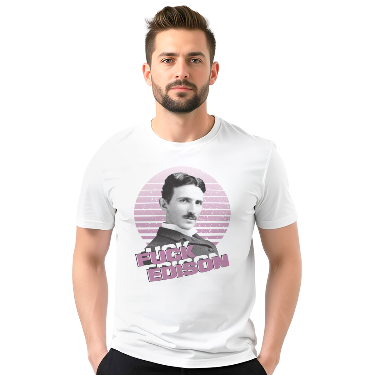 Ova muška bela majica sa Teslinim likom i natpisom ‘Fuck Edison’ spaja istoriju, bunt i stav u jednom komadu garderobe. Inspirisana je večitim rivalstvom genija i sistema koji ga nije razumeo. Motiv je dostupan u tri različita dizajna, svaki sa istom porukom, ali drugačijim vizuelnim pristupom. Namenjena je svima koji cene Teslin um, ideje i nepravdu koju je preživeo. Bela boja daje čist kontrast snažnoj poruci i upečatljivoj grafici. Kroj je klasičan i udoban, pogodan za svakodnevno nošenje. Majica se lako uklapa u urbani stil, bilo uz farmerke ili patike. Ako voliš nauku, istoriju i stav bez cenzure, ova majica priča tvoju priču.