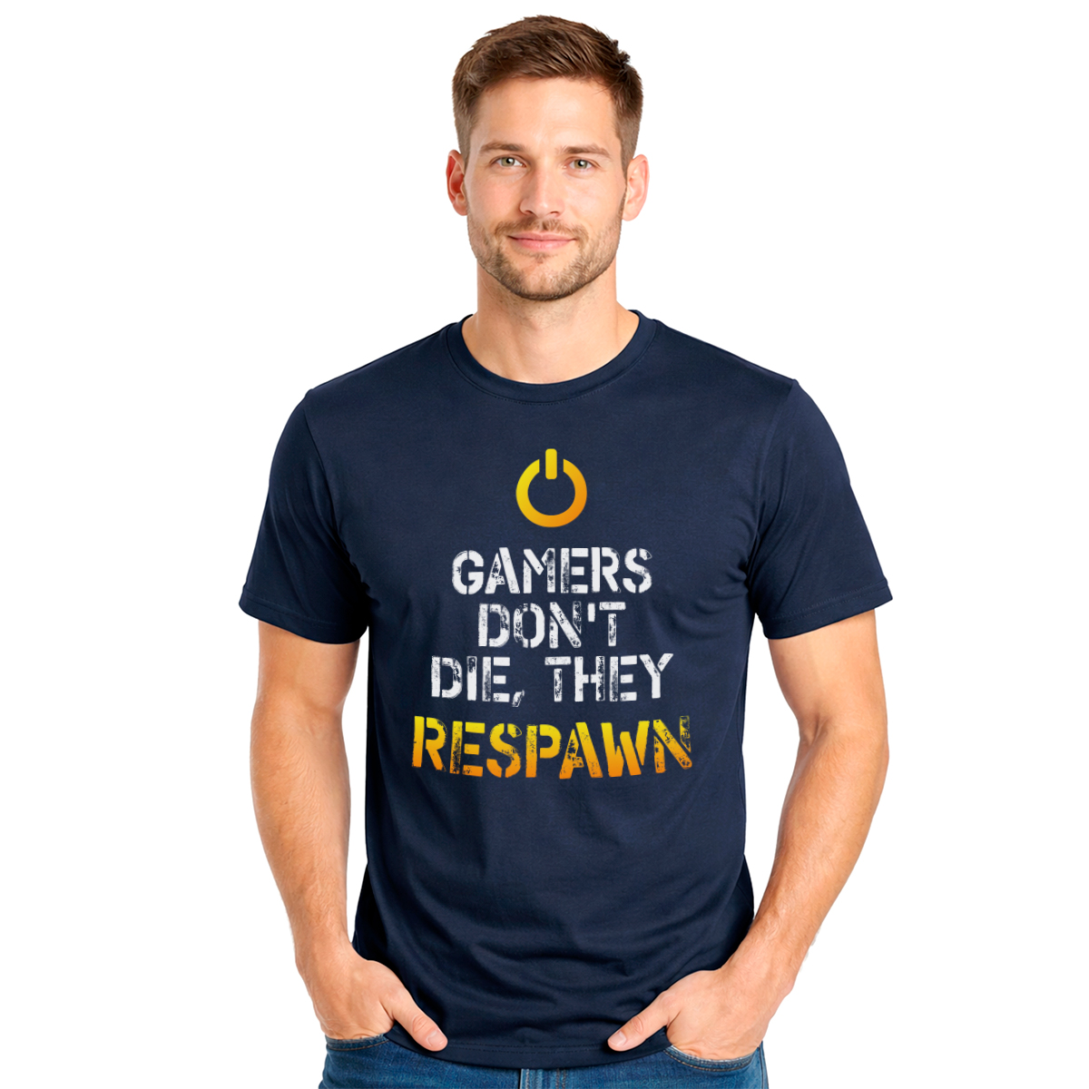 Muška teget majica sa natpisom Gamers don’t die, they respawn savršena je za prave gejmere. Tamna nijansa i upečatljiva poruka čine je modernim i udobnim izborom za svakodnevno nošenje.