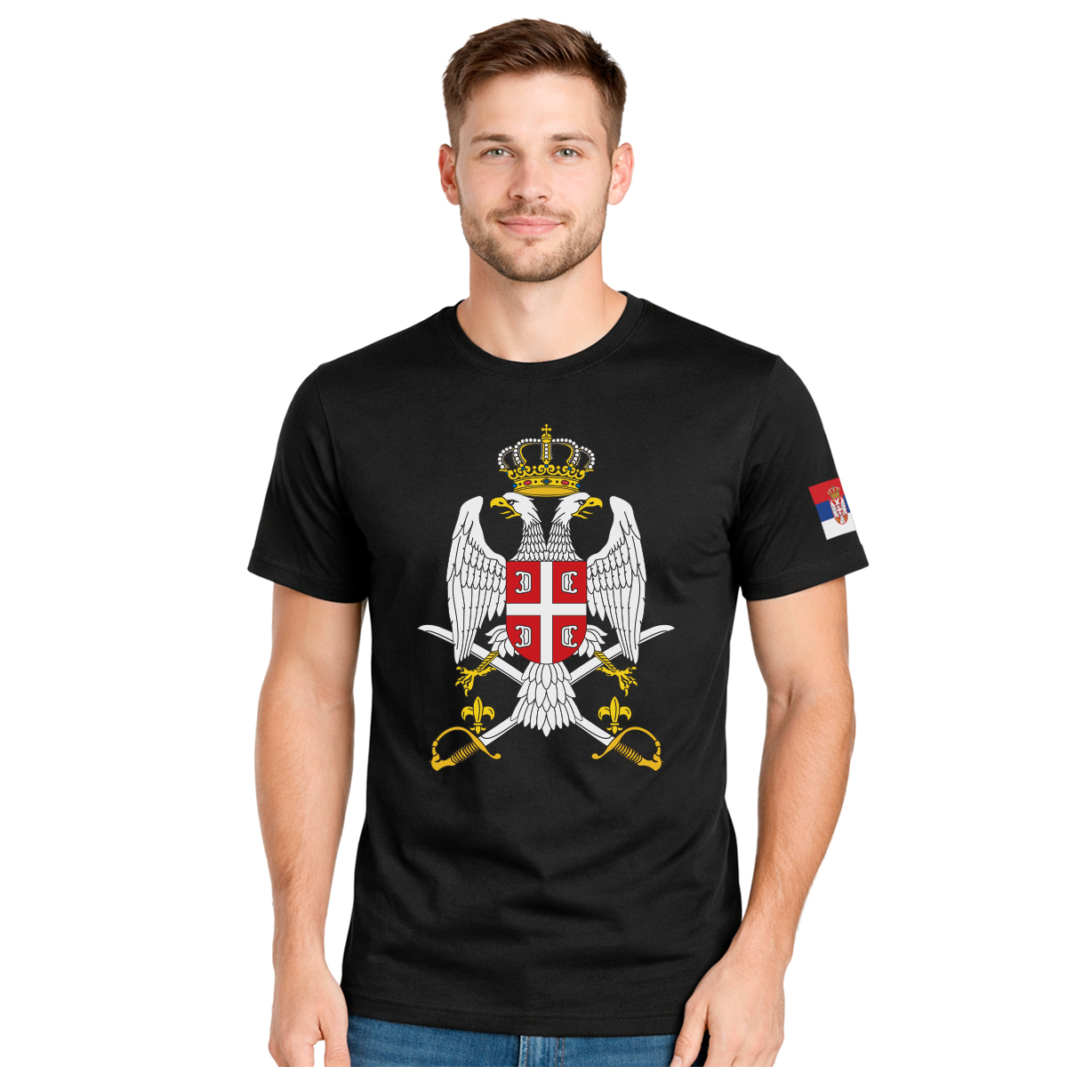 Muška crna majica sa grbom Vojske Srbije, simbolom časti, discipline i služenja otadžbini. Namenjena onima koji poštuju vojnu tradiciju i nacionalne vrednosti.