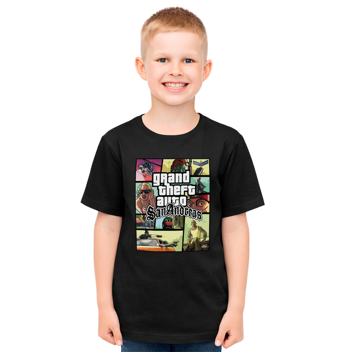 Dečija crna majica sa motivom iz igre GTA San Andreas idealna je za male fanove gejming klasika. Udobna i moderna, savršena je za svakodnevno nošenje.