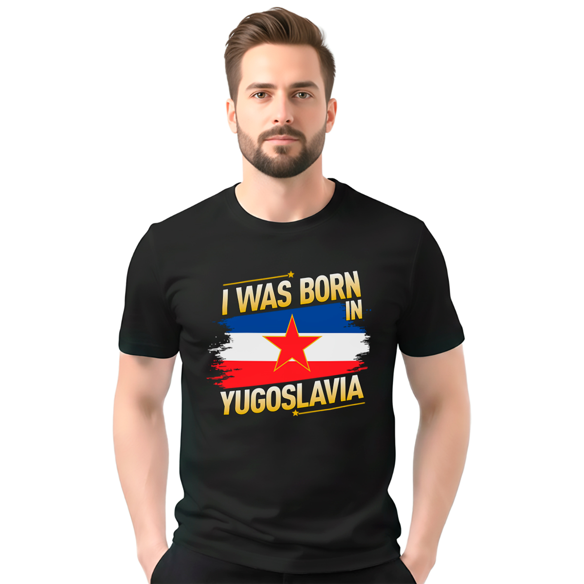 Muška crna majica sa natpisom ‘I was born in Yugoslavia’ izrađena je od 100% pamuka vrhunskog kvaliteta. Mekan i prijatan materijal obezbeđuje udobnost tokom celog dana, dok kvalitetna izrada garantuje dugotrajnost, otpornost na pranje i očuvanje oblika i boje. Namenjena je svima koji sa ponosom nose uspomenu na vreme i prostor u kom su rođeni, bilo kao ličnu priču ili deo identiteta.