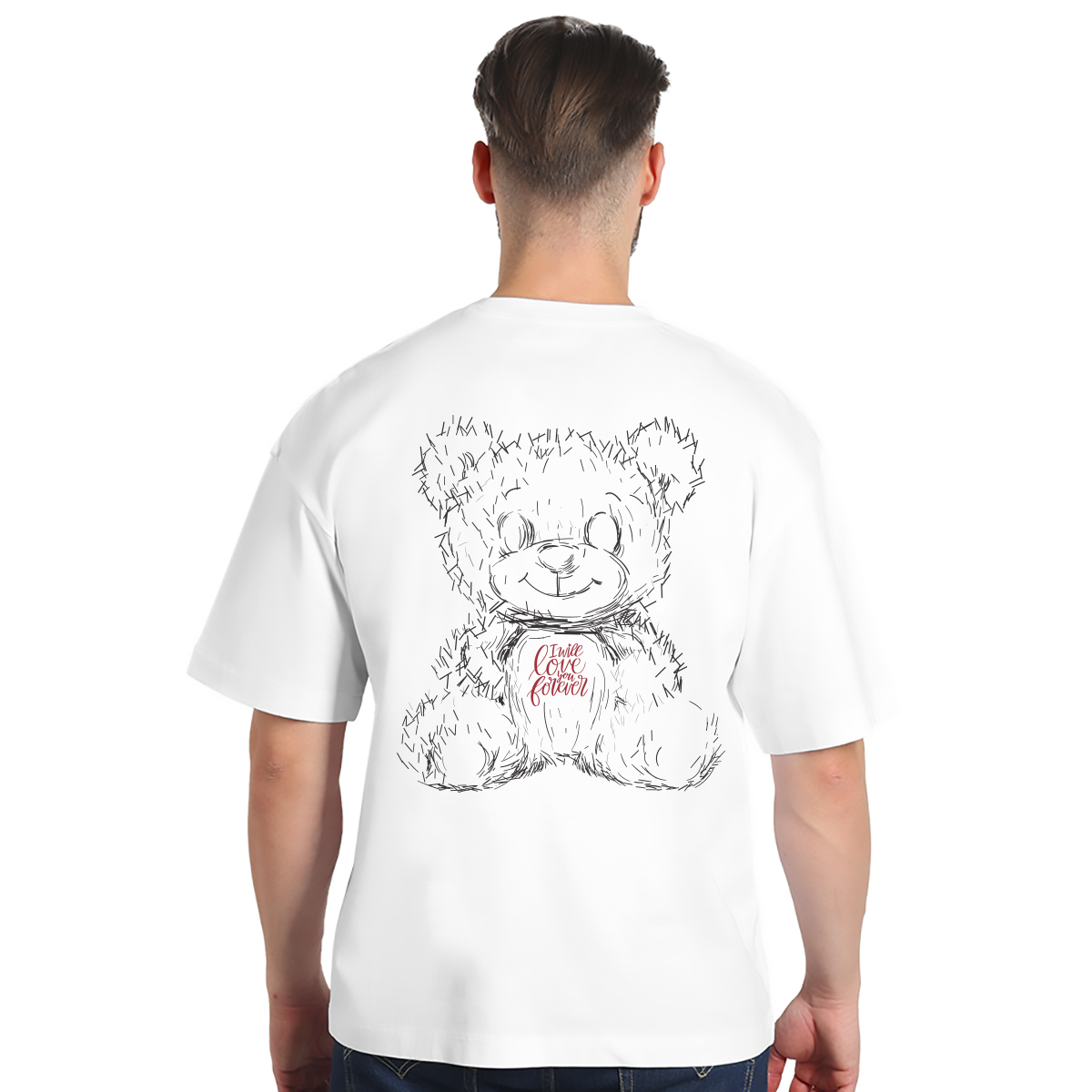 Muška majica ‘I will love you forever’ sa motivom medveda. Ima svoju žensku oversize majicu u paru i idealna je kao poklon za Dan zaljubljenih.