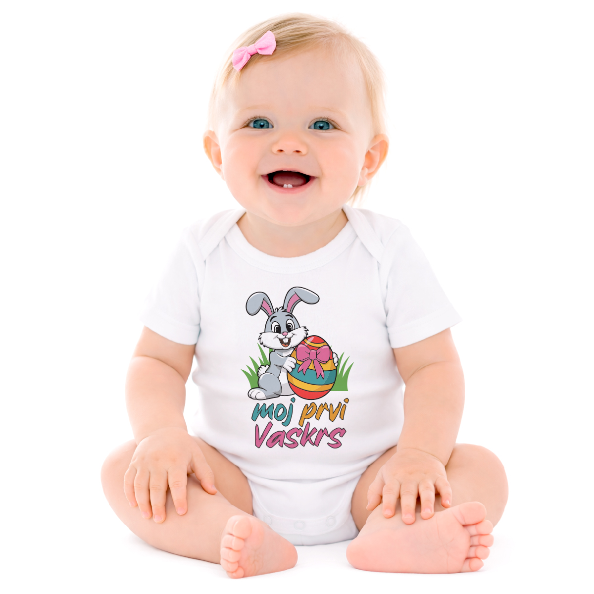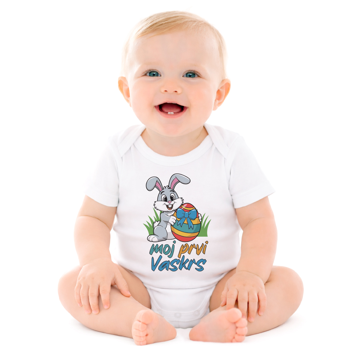 Bodić za bebe sa natpisom ‘Moj prvi Vaskrs’, savršen za praznične fotografije i uspomene. Mek i udoban, idealan za nežnu bebinu kožu.