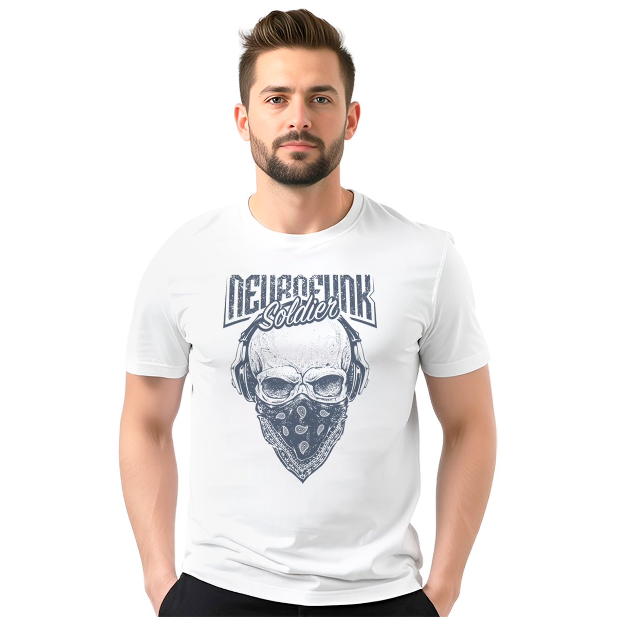 Ova muška bela majica sa motivom ‘Neurofunk Soldier’ namenjena je istinskim fanovima drum & bass kulture. Neurofunk nije samo muzika, već stav, energija i način života. Dizajn nosi mračan, futuristički šmek koji se savršeno uklapa u urbani fazon. Bela podloga daje jak kontrast grafici i čini poruku još upečatljivijom. Kroj je klasičan i udoban, idealan za celonoćne žurke, festivale ili svakodnevnu bleju. Majica se lako kombinuje uz farmerke, patike ili duksericu. Štampa je kvalitetna i postojana, bez bledenja i pucanja. Ako ti je brz ritam u krvi i bas u grudima, ova majica jasno govori kojoj ekipi pripadaš.