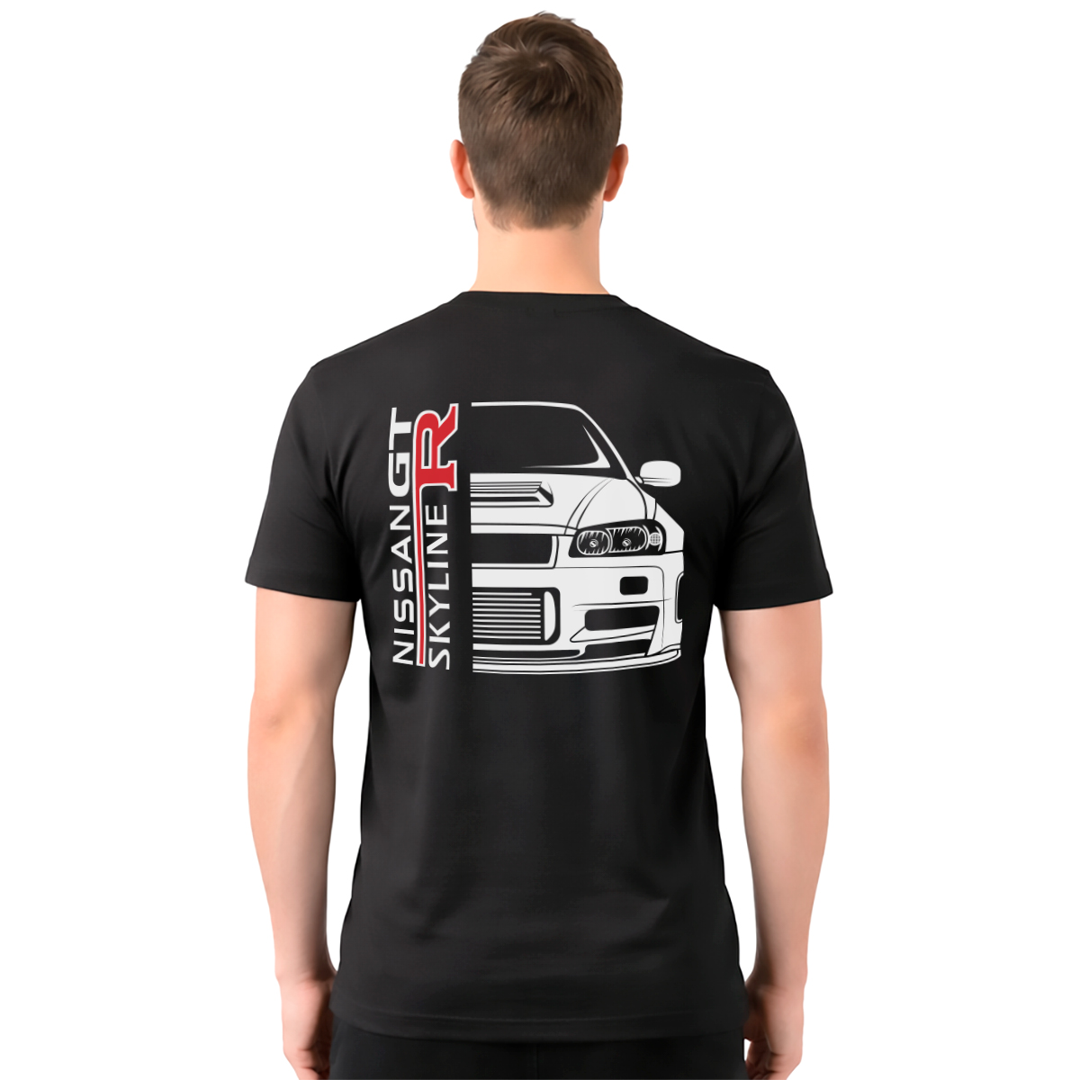Muška crna majica za ljubitelje brzine, japanske auto scene i čistog respekta. Skyline R34 je legenda, a ova majica to jasno pokazuje.