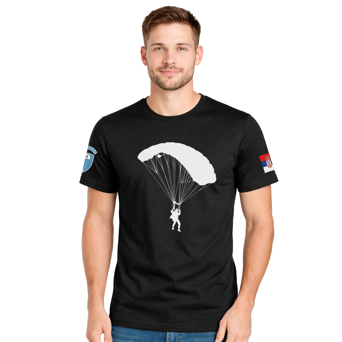 Ova muška crna majica odaje počast 63. Padobranskoj brigadi i njenoj vojnoj tradiciji. Crna boja daje ozbiljan i minimalistički izgled, dok dizajn jasno ističe pripadnost i poštovanje prema vojnicima. Majica je idealna za svakodnevno nošenje, gradski street stil ili kao simbol patriotizma i vojne discipline. Kroj je klasičan i udoban, pogodan za celodnevno nošenje. Štampa je kvalitetna i dugotrajna, otporna na pranje i habanje. Ovo je komad koji nosi stav, respekt i duh vojne tradicije. Ako želiš da pokažeš poštovanje prema vojsci i padobrancima, ovo je majica za tebe.