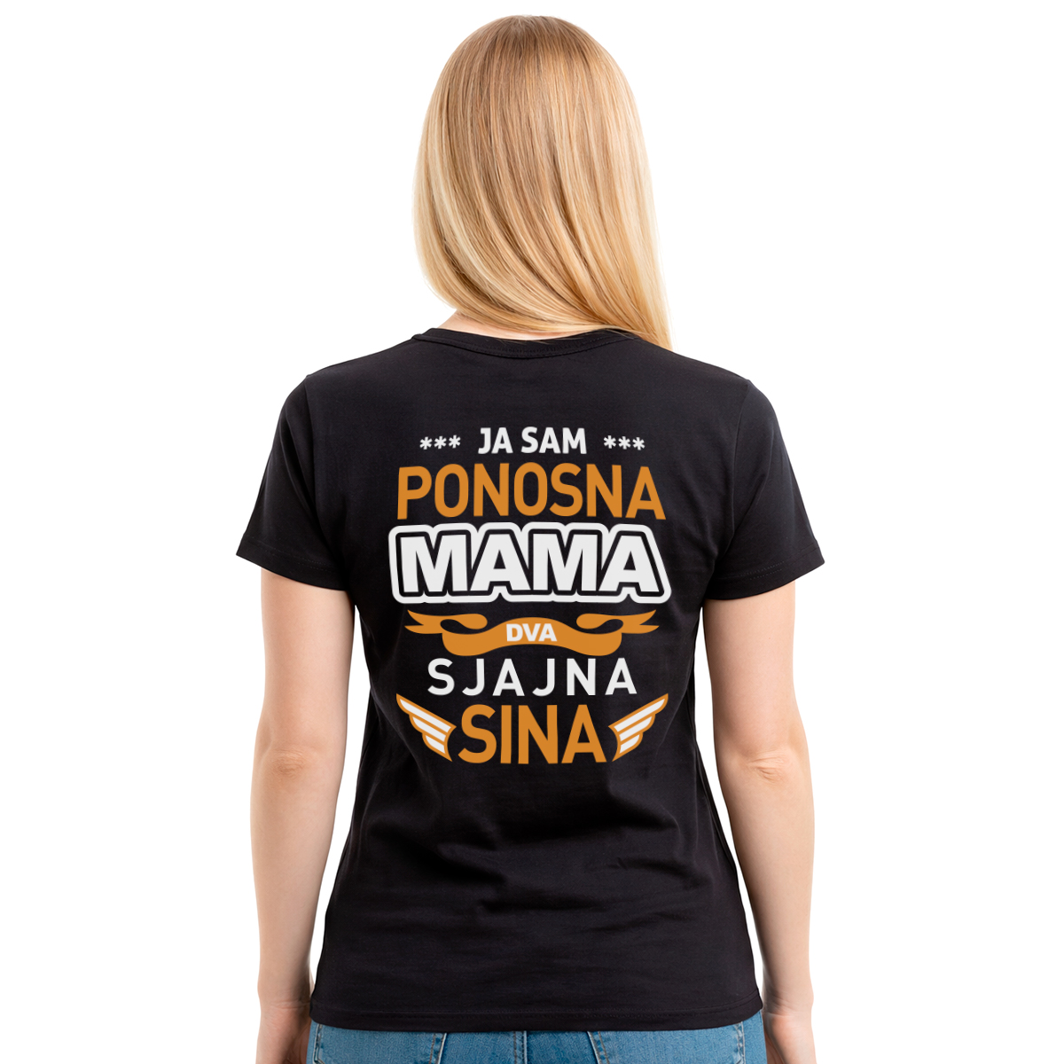 Ova ženska crna majica nosi poruku ‘Ja sam ponosna mama dva sjajna sina’ i namenjena je mamama koje znaju kolika je to snaga. Crna boja daje ozbiljan i moderan izgled, dok natpis nosi toplu i emotivnu poruku. Kroj je udoban i prijatan za celodnevno nošenje, bez stezanja. Idealna je za svakodnevne obaveze, šetnje, školu, treninge i porodična okupljanja. Majica se lako kombinuje uz farmerke, patike ili jaknu. Štampa je kvalitetna i postojana, pa poruka ostaje jasna i posle mnogo pranja. Savršena je kao poklon koji ima pravo značenje i emociju. Ako želiš da pokažeš ponos na svoje sinove, ova majica govori sve umesto tebe.