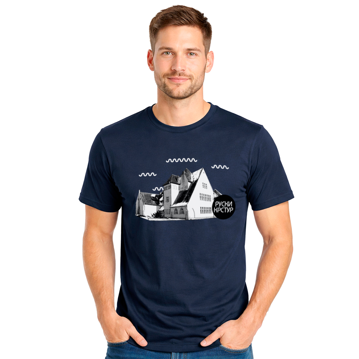 Ruski Krstur Zamak – muška teget majica koja nosi simbol mesta, sećanja i pripadnosti.