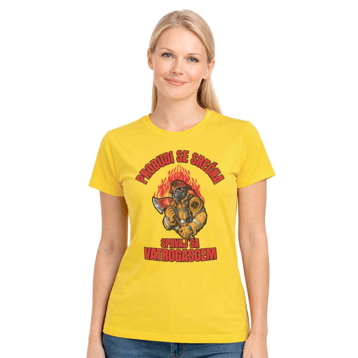 Ova ženska žuta majica nosi šaljiv natpis ‘Probudi se srećna, spavaj sa vatrogascem’ i igra na kartu humora, samouverenosti i dobre zezancije. Idealna je za devojke koje znaju da iznesu foru i ne plaše se pažnje. Žuta boja daje vedar, energičan izgled i dodatno ističe poruku. Kroj je prilagođen ženskoj figuri i udoban za celodnevno nošenje. Lako se kombinuje uz farmerke, šorts ili suknju, za grad ili opuštenu bleju. Štampa je kvalitetna i postojana, bez bledenja i pucanja. Majica je savršen izbor za letnje dane, druženja i neobavezne prilike. Odlična je i kao poklon koji će sigurno izmamiti osmeh.