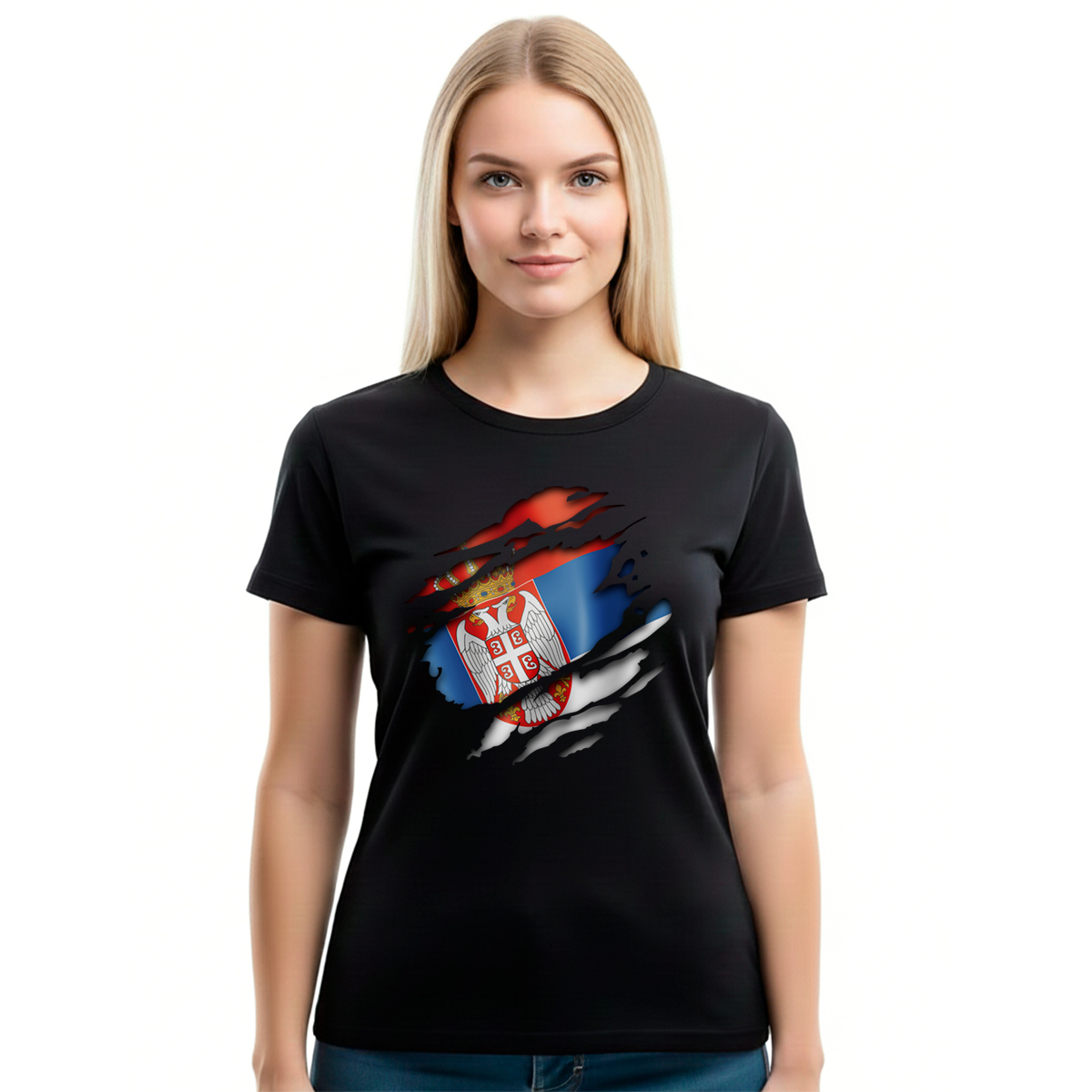 Srbija u grudima – ženska crna majica