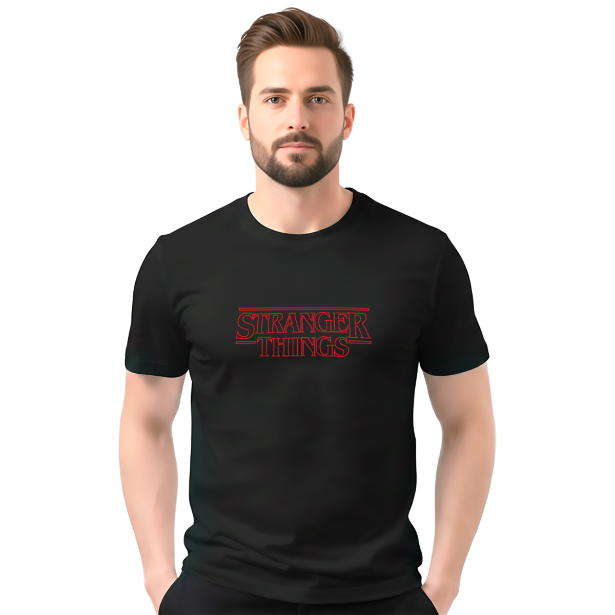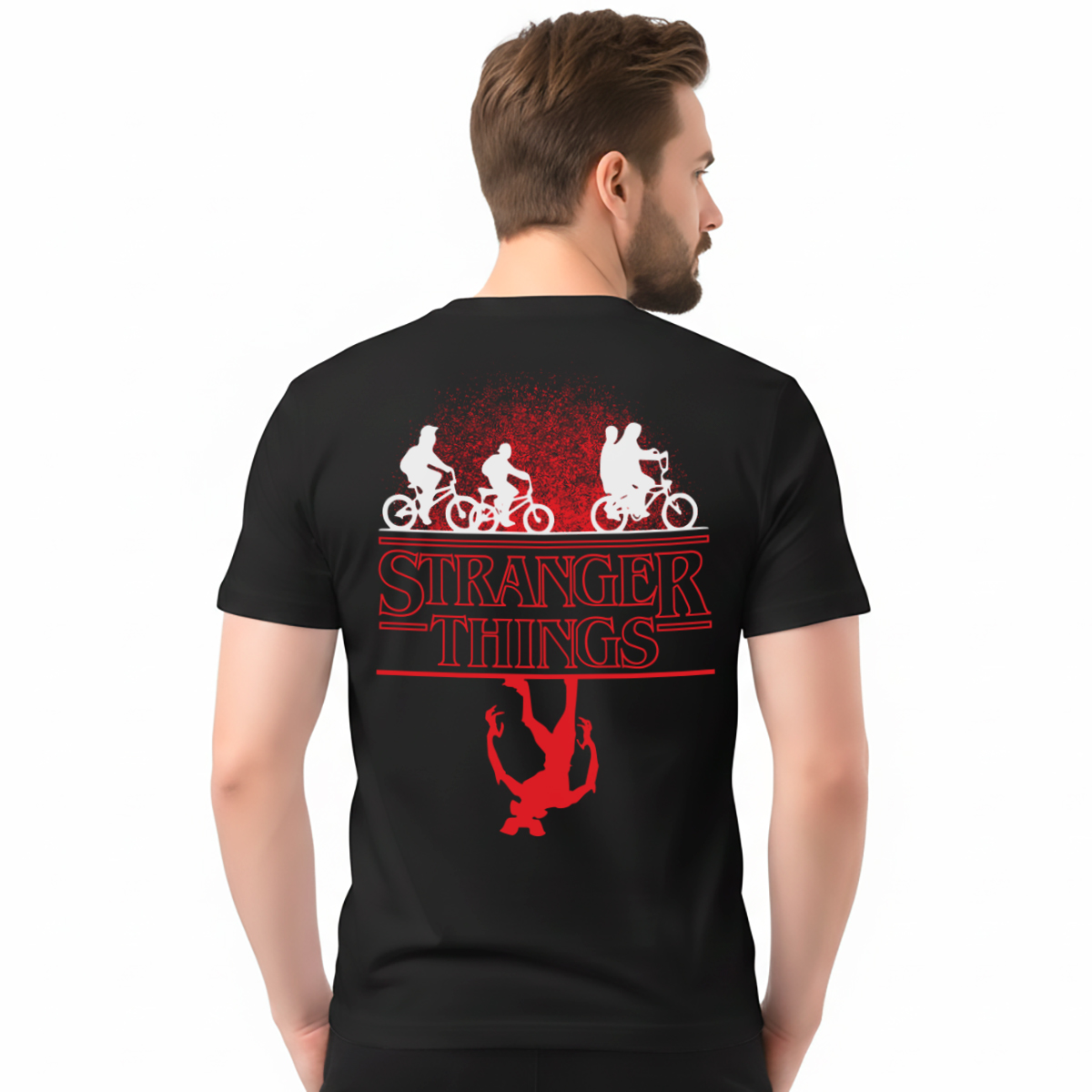 Muška crna majica sa motivom ‘Stranger Things’, idealna za ljubitelje serije i urbanog stila.