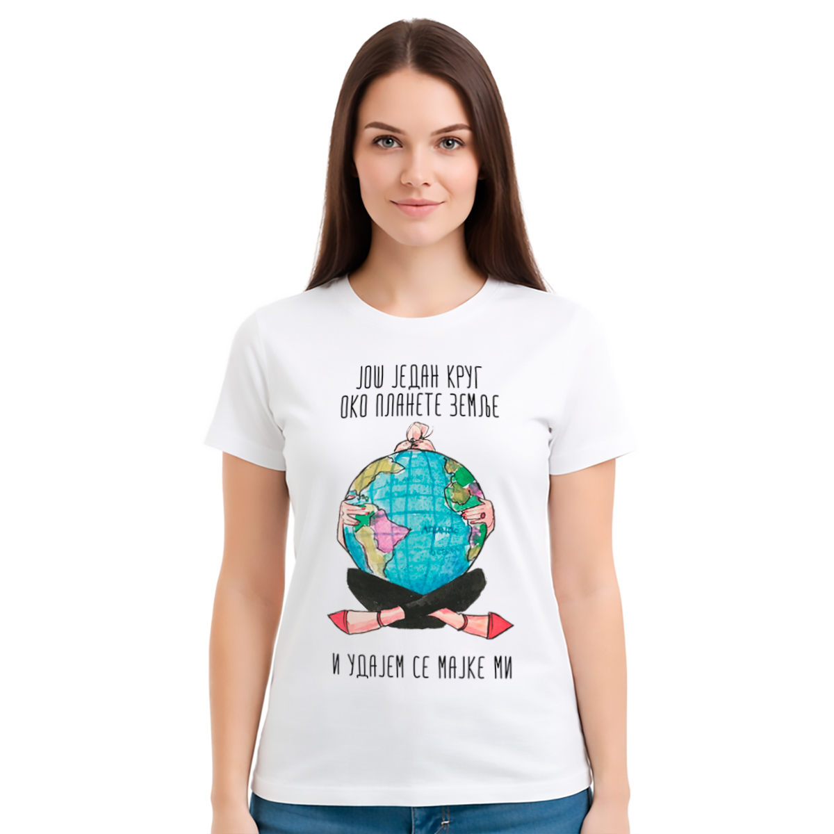 Ova ženska bela majica je idealan izbor za sve koje žele da svoje venčanje najave sa stilom i osmehom. Napravljena je od mekanog i kvalitetnog materijala, što je čini udobnom za svaki dan. Natpis ‘Još jedan krug oko planete Zemlje i udajem se, majke mi’ donosi dozu humora i pažnju gde god da se pojaviš. Neutralna bela boja omogućava lako kombinovanje sa omiljenim farmerkama ili suknjama. Savršen je poklon za buduće mlade, venčanja, devojačke večeri ili kao originalna ideja za poklon. Ova majica nije samo garderoba, već i mala izjava sreće i zabave. Moderno, udobno i zabavno – proslavi ljubav sa stilom!