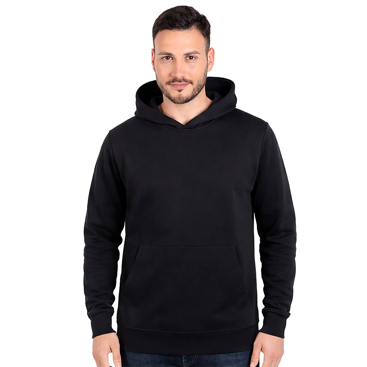 Crni duks za muškarce i žene bez štampe, sa kapuljačom i kengur džepom. Minimalistički, udoban i praktičan za svaki dan.