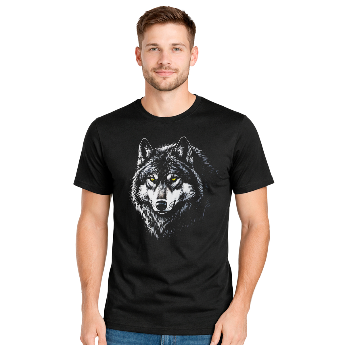 Muška crna majica sa motivom vuka, snažnog i prepoznatljivog simbola. Udobna i kvalitetna, lako se kombinuje sa farmerkama ili trenerkama.