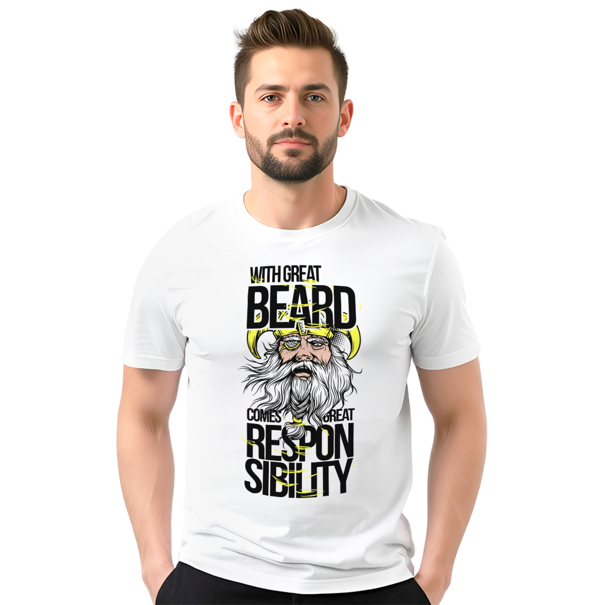 Bela majica ‘With great beard comes great responsibility’ savršena je za bradonje koje vole čist stil i dobar humor. Poruka je jasna – brada je stvar karaktera.