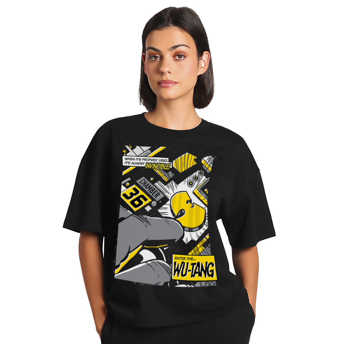 Crna ženska oversize majica sa Wu-Tang Clan printom. Udoban kroj, kvalitetan pamuk i autentičan streetwear stil. Savršena za svakodnevno nošenje i urbane kombinacije.