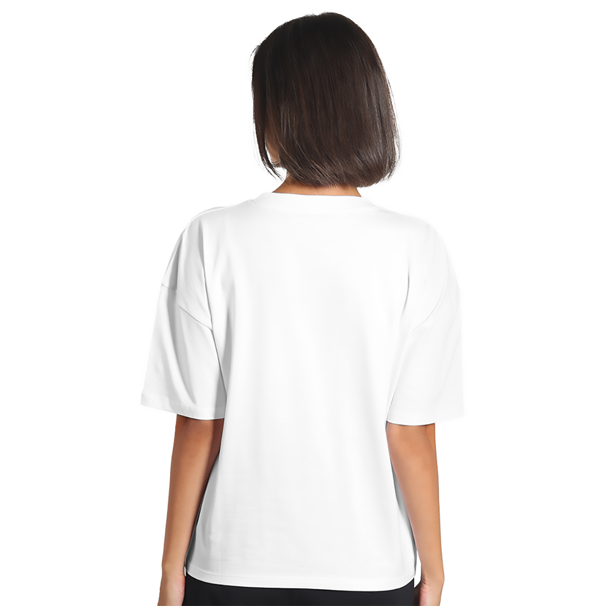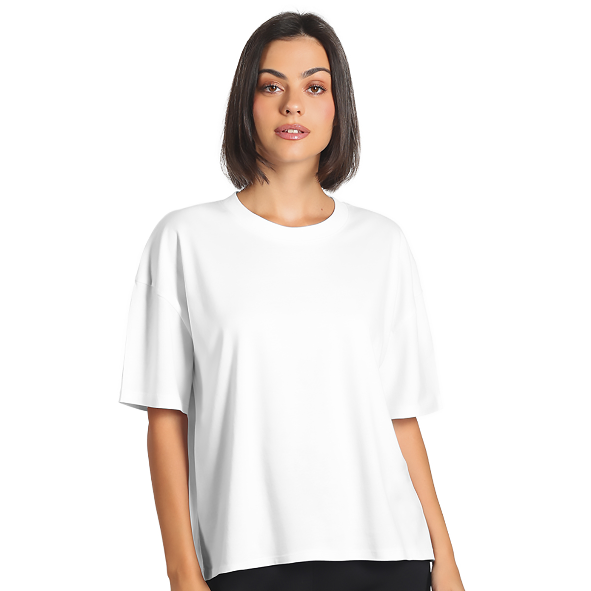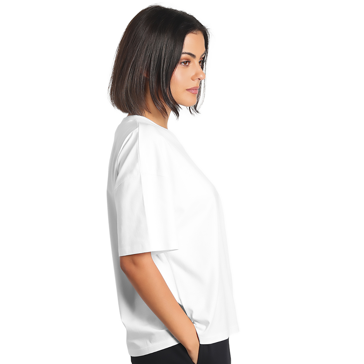 Ženska oversize bela majica bez štampe – širi kroj, udoban pamuk i opušten stil za svakodnevno nošenje i lako kombinovanje.